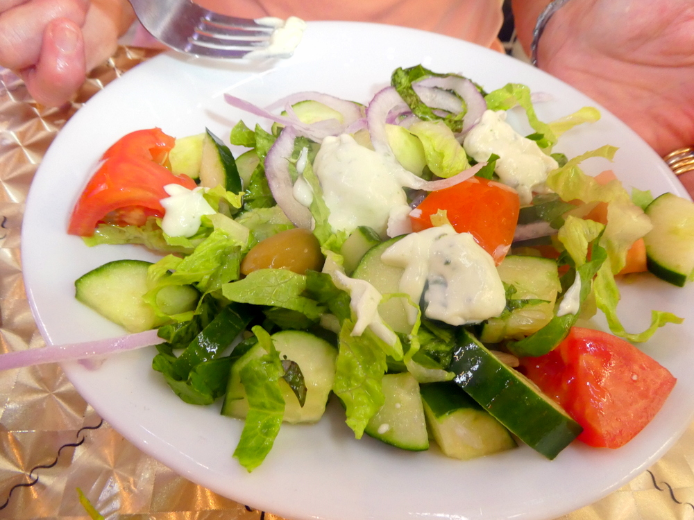 Marg’s Salad was the standard which is prepared in batches and sits on the counter. Marg squeezed the Lemon over the array of Vegetables. The large Pickled Pepper came my way as did one Olive. So generous.
