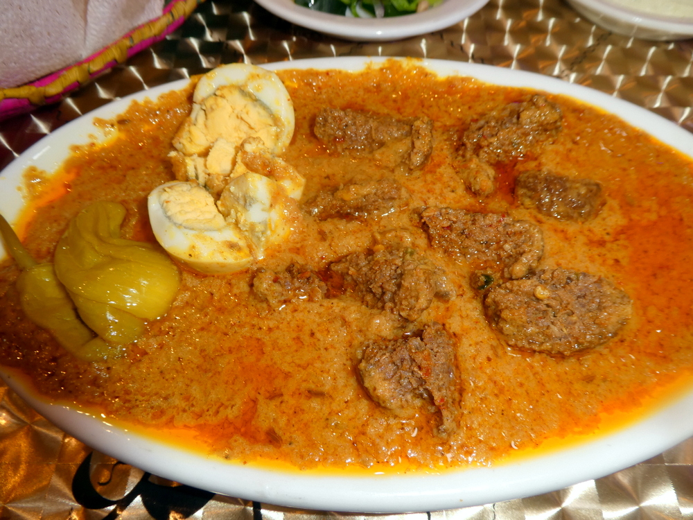 Our friendly waiter greeted with thumbs up, he knew why Hector was here. I approached the counter – Kofta Anda? He pointed to one of the trays under the glass counter. I would not have recognised this otherwise. With no Kofta or Egg protruding through the mysterious Masala I deduced there was not much left.