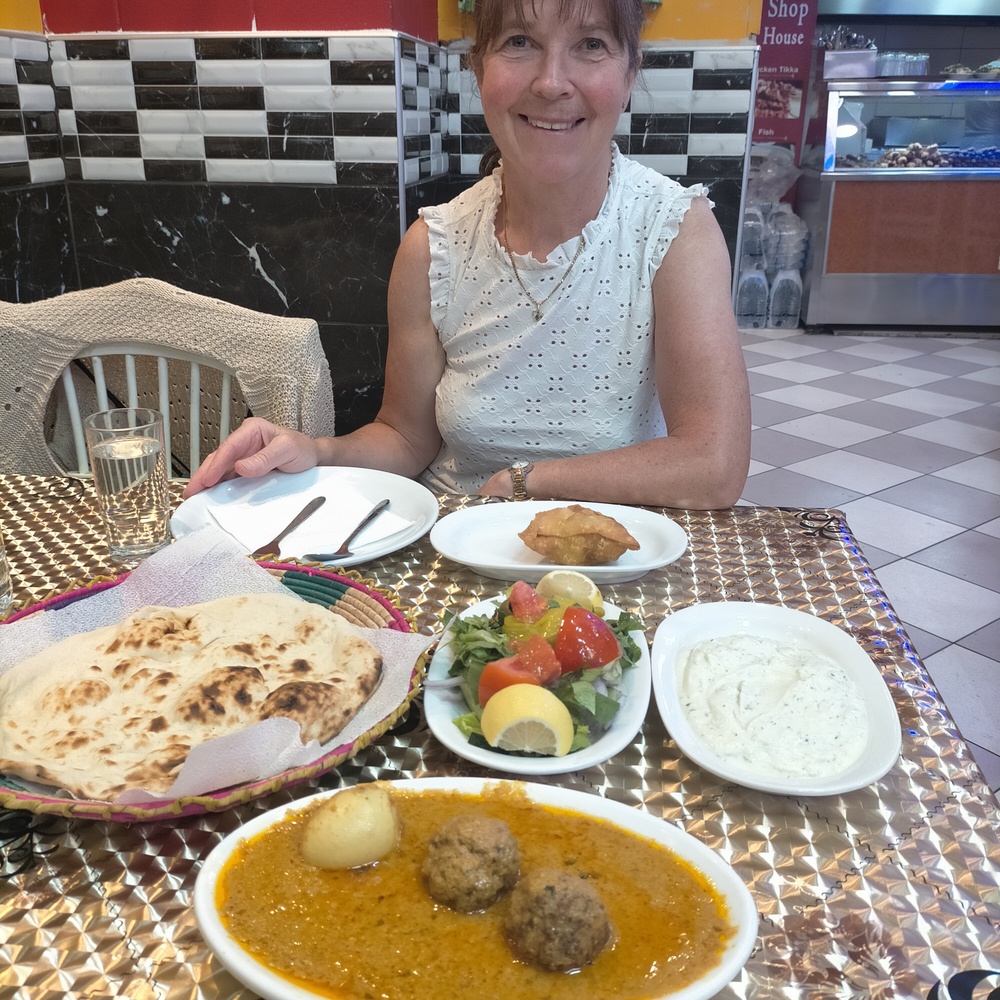 The Salad today had two pickled Chillies, these were coming Hector’s way. Marg was about to arrange the Salad on her plate whilst she waited for the Samosa, however, everything had arrived.