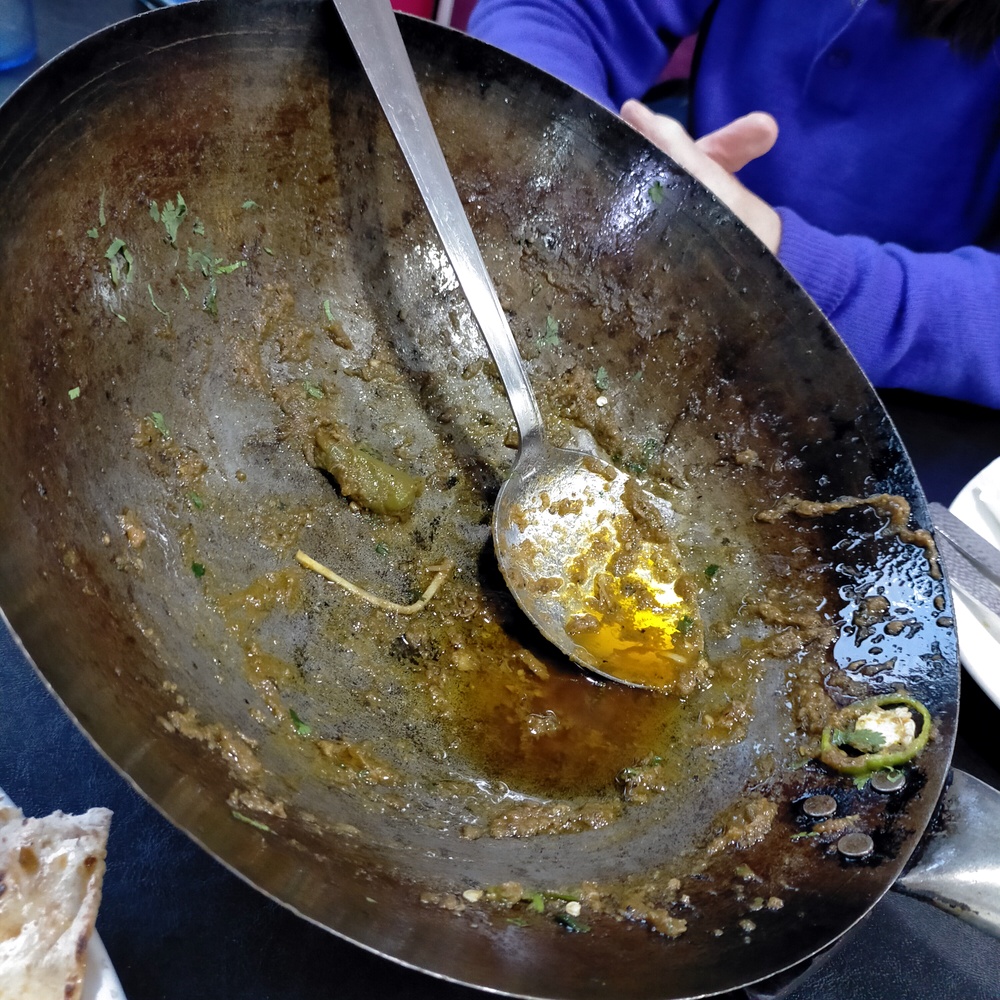 Where was the Oil? The wok sat at an angle on the wooden stand. In time, we had a small puddle sitting adjacent to the remaining Karahi which had magically retained some foliage. This was very much a case of last mouthful as good as the first.
