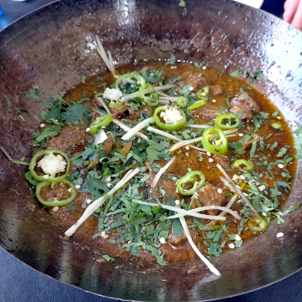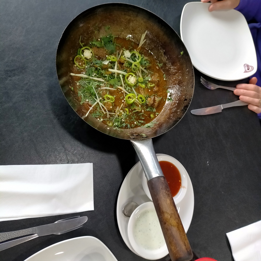 No karahi today, the Lahori Chaska was served in the wok in which it had been created. Everything was – Hot!