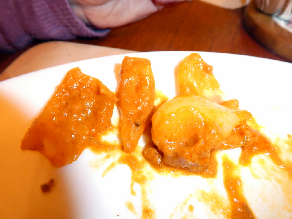What’s that? – I asked pointing to something light and shiny in the foil container. It was the first sign of what else was here apart from the Lamb. The blobs were set aside, a warning on the Menu may have avoided this.