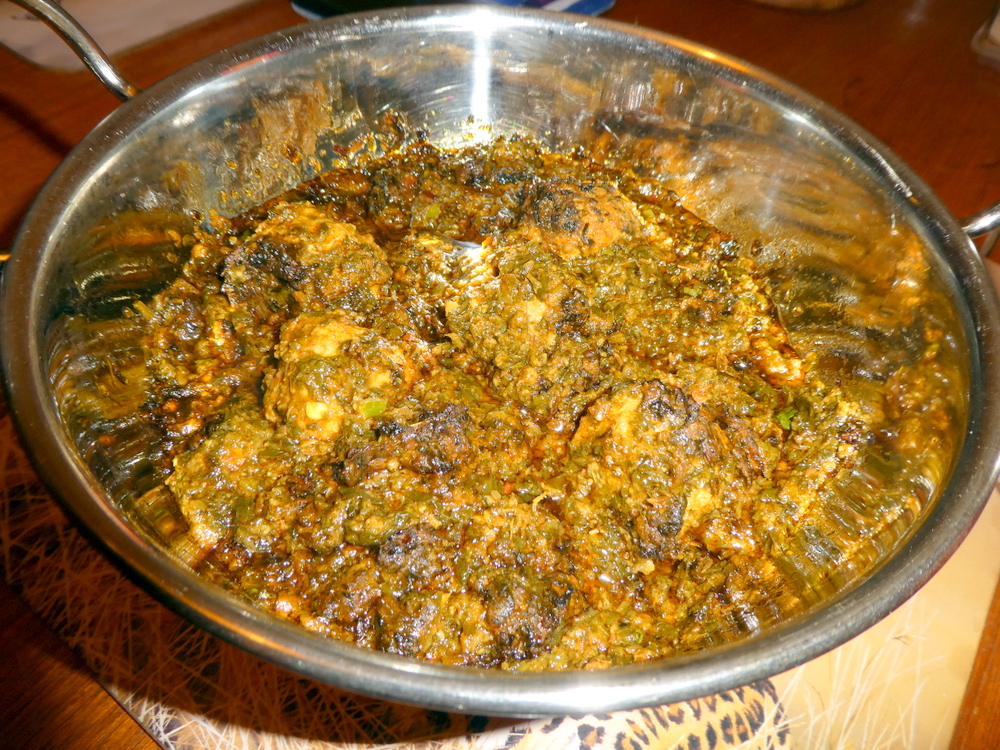 Five Meatballs sat in the Thickest and Darkest of Masalas, each would be quartered. When one takes the notion for Spinach, there is no going back. There was an immediate hit on the back of the throat, if astringency can be pleasant, this was. The Flavour of the Spinach was full on, Naan and Masala, this was working well. The Kofta proved to be under-seasoned, a disappointment. This meant that flavour-wise, they were making less of an impact. One is used to seeing Kofta (Anda) on display in the Curry Cafes, sat in Shorva, the Meatballs taking in the Flavours. This Masala was far from – Soup. It was felt that the Spinach-rich Masala and the Kofta had only recently been introduced. For practical reasons, and given the scale of the Menu, this may well be understood.