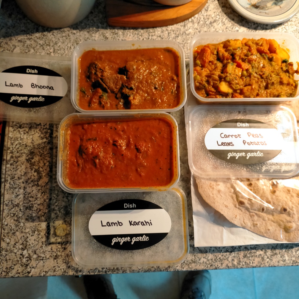 The – silly season – is over, Marg has had her birthday too, time to get things back to whatever normal we presently live in, and definitely time for the first Curry of 2021. Ah, the power of advertising, Ginger Garlic (41 Byres Rd. Glasgow G11 5RG) has been popping up on a certain social medium. Homestyle Indian food – is what they offer and they deliver to all – G – postcodes. Having food delivered is a concept which I have yet to fully embrace. Too often one reads of long delays and disappointment. If a venue is local, then go and collect, surely. My indulgence, courtesy of Yadgar, in the days before xmas, was only the second time I have had food delivered. The first was many moons ago when a Bradford outlet was able to ship Curry around the nation packed in dry ice. The arrival of this at school (work) certainly caused a stir, to what lengths was Hector willing to go for decent Curry?