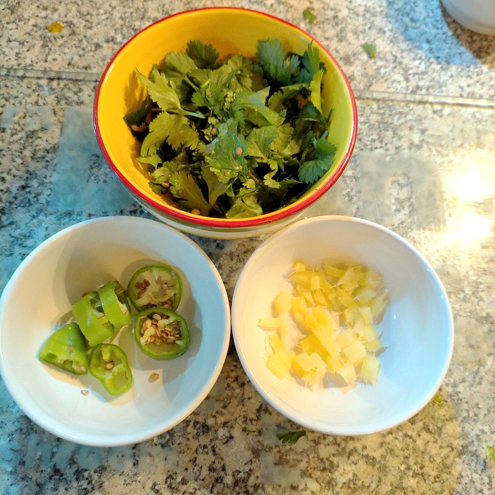 This evening it was time to reheat the Curry and stir in the Garam Masala. Fresh – Foliage – was also assembled. At the point of serving I had to smile, this was far from Shorva, a very decent Masala would be presented.