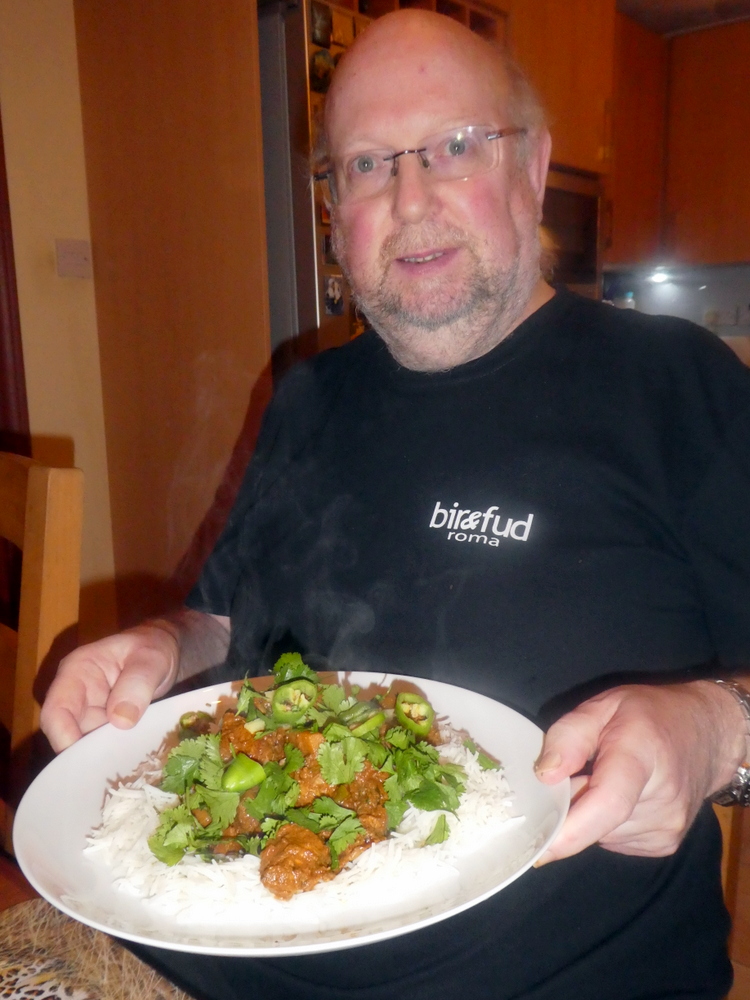 The preparation and hence cooking were done yesterday. The Lamb on-the-bone had previously been purchased at my local Halal Butcher, in Garscadden, the closest source to Clydebank. I used less Onion and upped the Tomato content. Star Anise and Tamarind Sauce were again the departures from my standard Masala. The plan was to create a traditional Curry, something wet, a change from my usual Karahi Gosht. Also, no Bread, Curry & Rice, apparently it’s a popular combination. After some seven hours, I tested the Meat, ah yes, this would do nicely. Unplugging the machine, the Fresh Coriander was stirred in and everything left overnight.