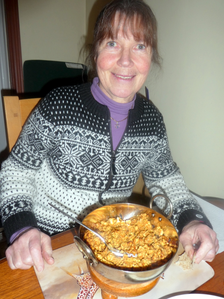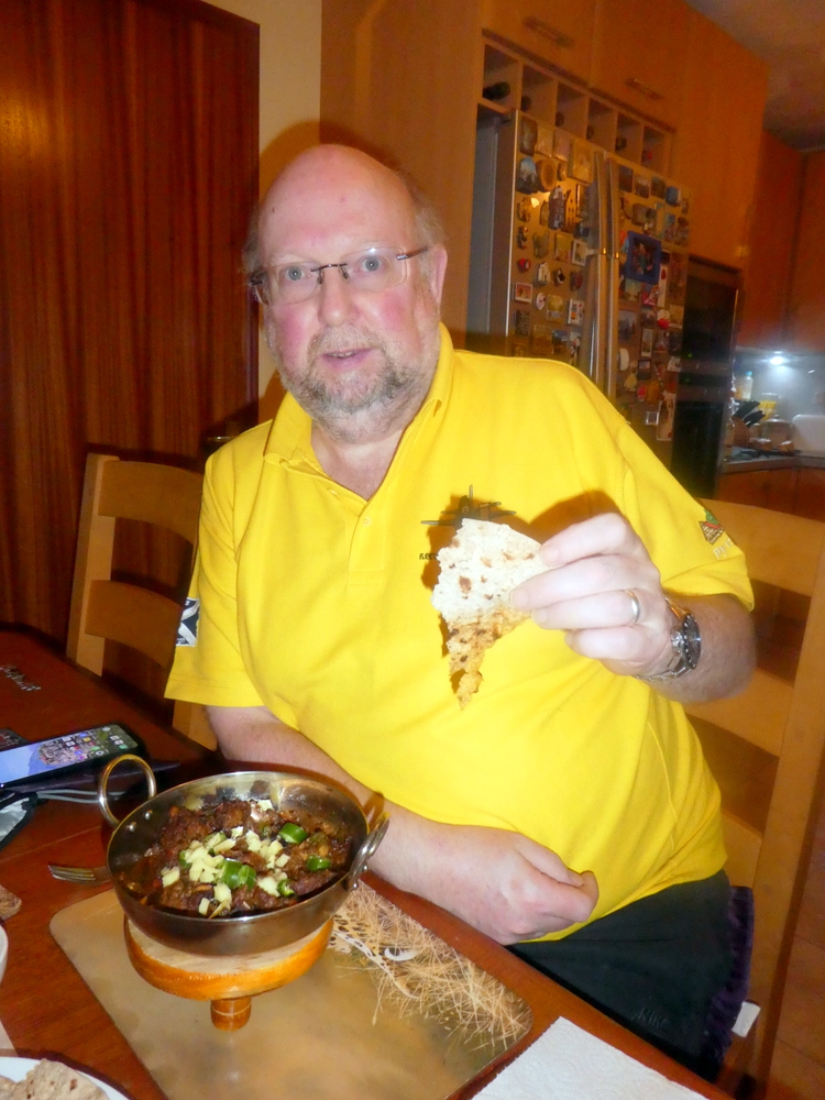 Hector was in his element, alternating Chapatti and Masala with the so flavoursome Meat. This Meat was very much in the – giving – category.