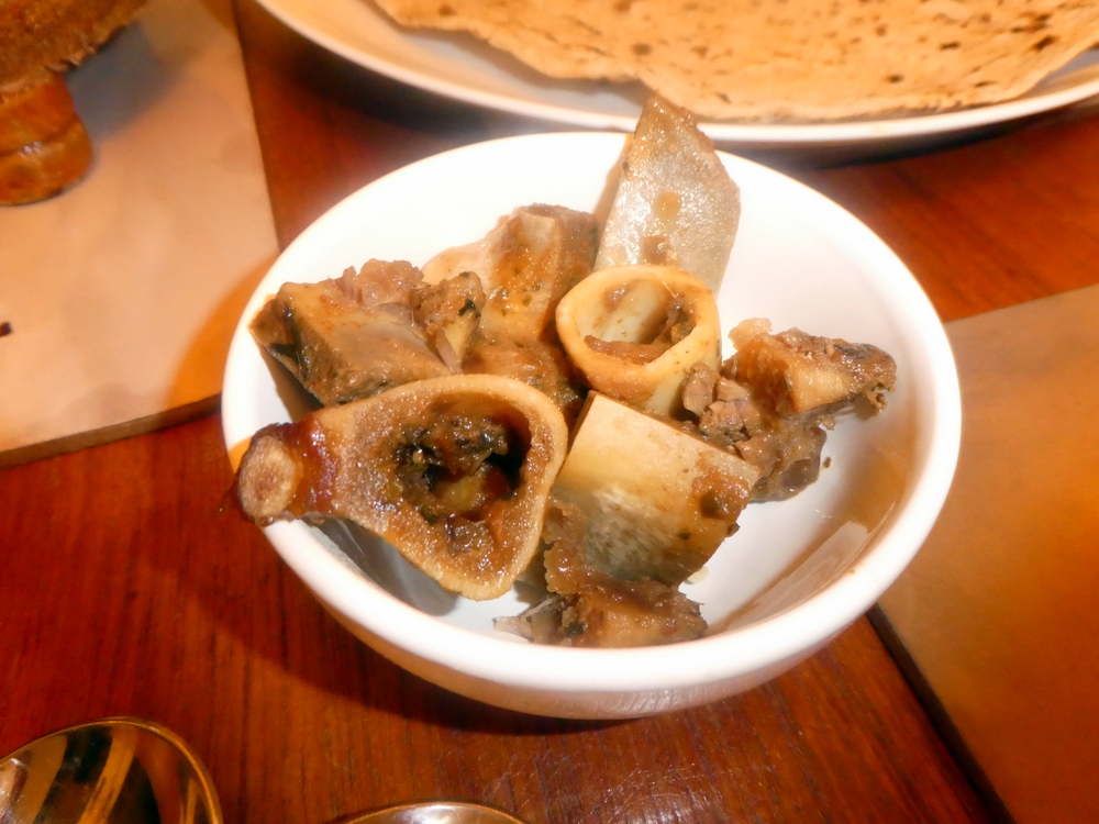 The top pieces of Meat showing signs of burning were consequently tougher than the perfect Lamb which lay beneath. Sucky bones, marrow, all the Flavours one has come to hope for in a Karahi Palace creation.