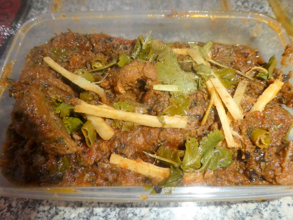 The reheat this evening was done using Hector’s preferred method, karahi placed in a conventional oven. After fifteen minutes, I could see some of the Lamb showing signs of burning on the extremities.