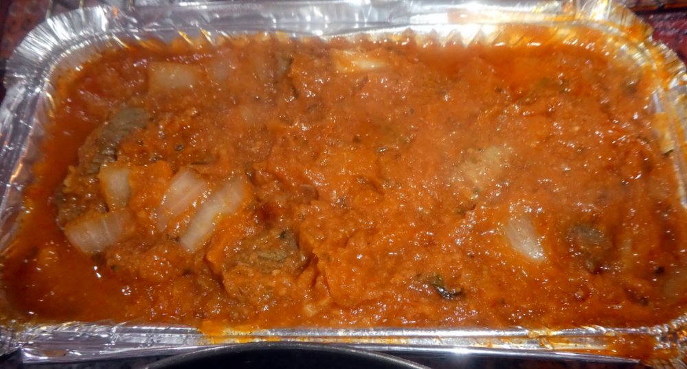 Hector had a hot oven waiting to give a boost to the Curry. It was pleasing to see foil containers, so straight in. The Chapatti I would describe as relatively – small – and the Rice – not so special.