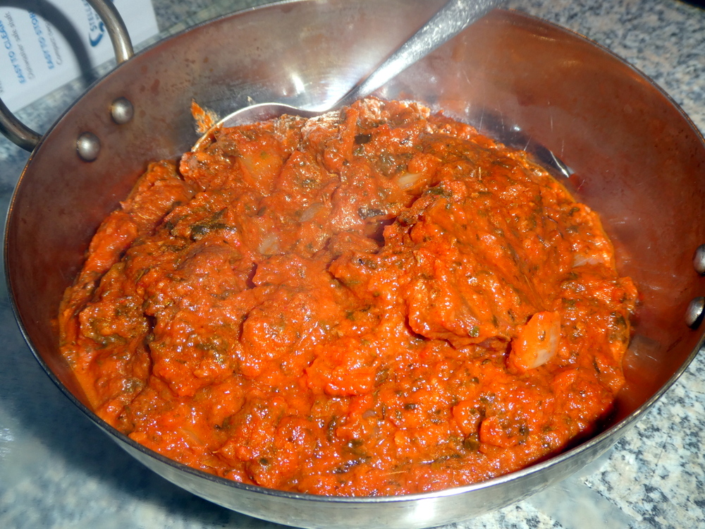 The title made me confident that this would indeed be a Masala with Methi and not a mass of – green. The colour of the Masala was a slightly worrying – red – with the flecks of Methi mixed through. The blended Masala was delightfully thick, large pieces of Onion had then been added. I counted the Meat into double figures, the majority of pieces were large, so no issues with quantity/value.