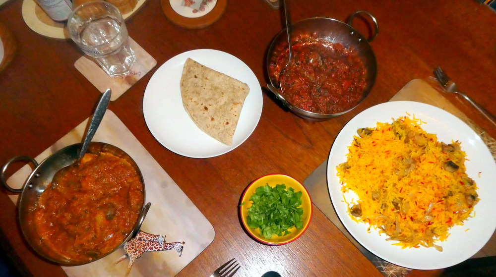 Mushroom and Onions, quite a step down from the Sabzi I cooked earlier in the week. The Rice portion was generous for one serving, but well short of enough to share. I’ve had larger portions for less money elsewhere. Marg liked her solitary Chapatti.