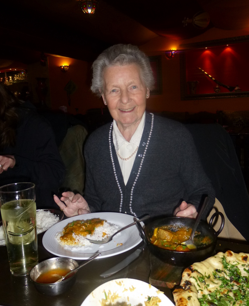 Mother passed this morning at the QEUH, a blessing after the years of advancing dementia and subsequent frailty. As has been recognised since the launch of Curry-Heute in the page – Hector’s Lust for Curry – it was Mother’s home-cooked interpretations of an authentic Indian Recipe in the early 1960s which enabled me to take on the – Full Bhuna – at Green Gates (Glasgow) @1968. Thereafter, Curry Houses were the only restaurants I ever wanted to visit. Those who have known me since university days know – The Rule.