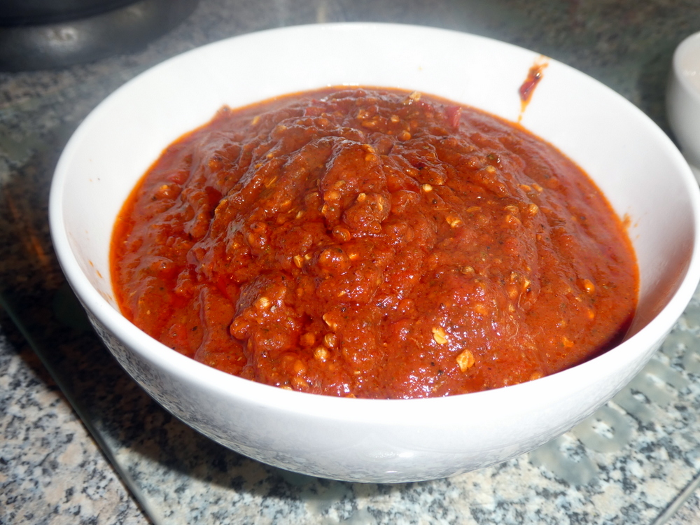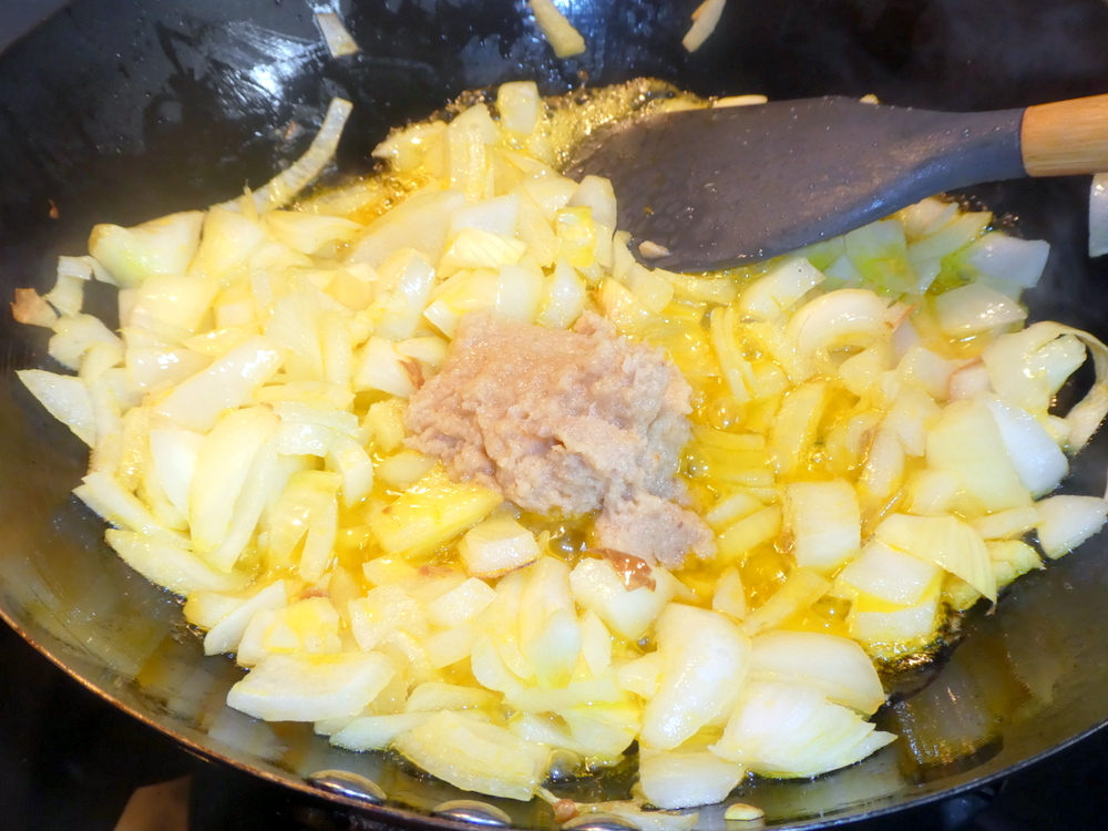 I like this method of recent weeks, on blending I had achieved a fine Tomato-rich, Spicy Masala. I could have stopped here, but an Onion was calling the Garlic and Ginger, and so back to the traditional method.