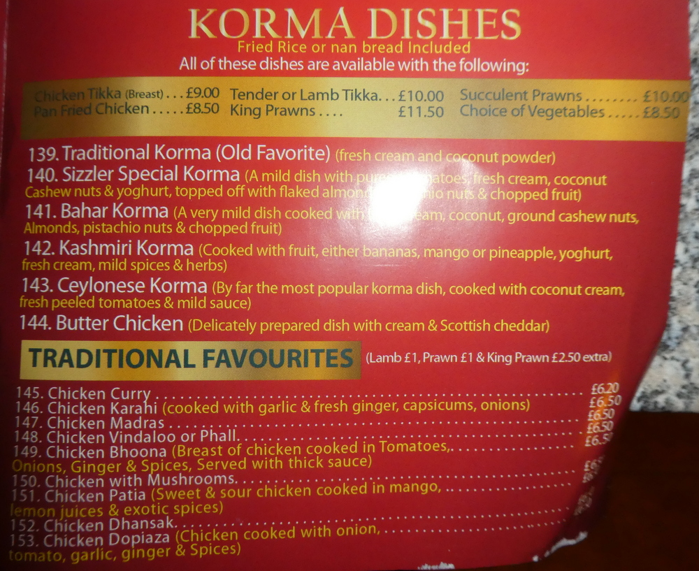 The App was slow, annoyingly so. Having added my customary caveat re Capsicum, it disappeared on the update. Still, we had chosen Curry which was clearly described as not containing the unnecessary ballast, many Dishes, too many Dishes, feature Peppers.