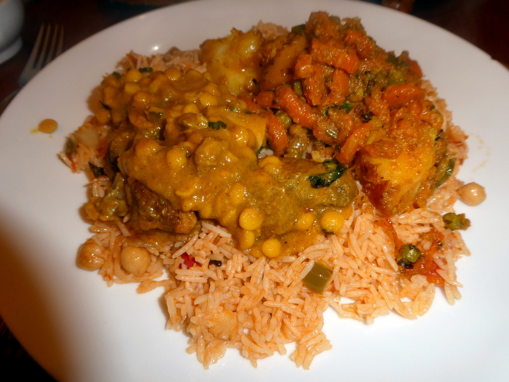 I needed more moisture, and this came from the Lamb Dhansak. I thoroughly enjoyed the sauce from the Dhansak. This was a good contrast with the Vegetable Curry which was Spicy.