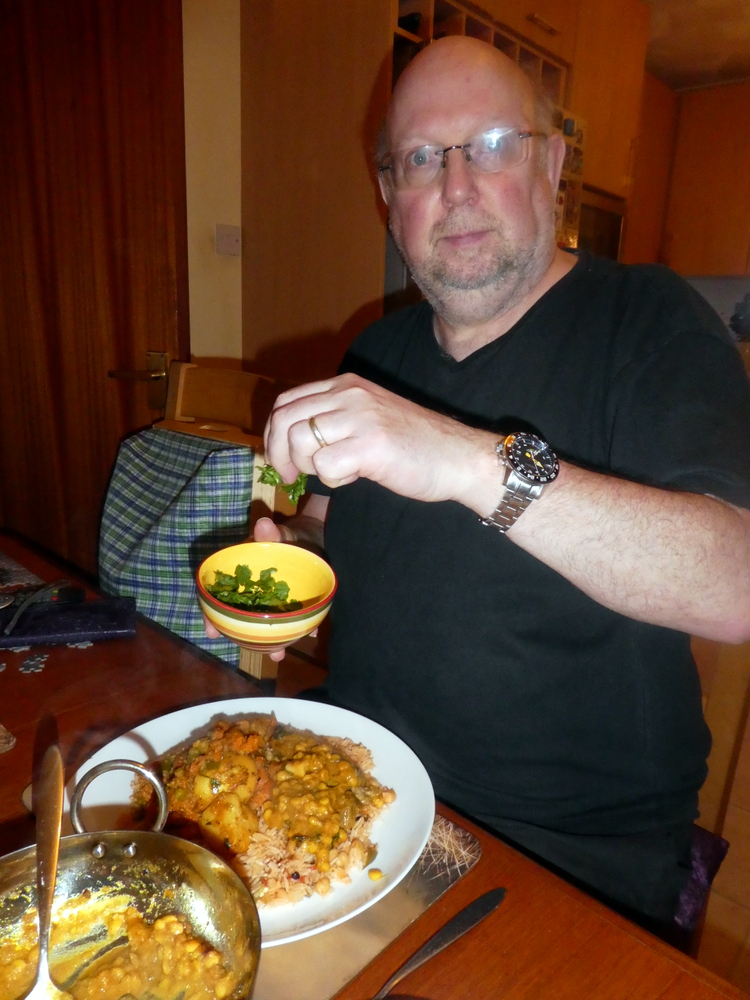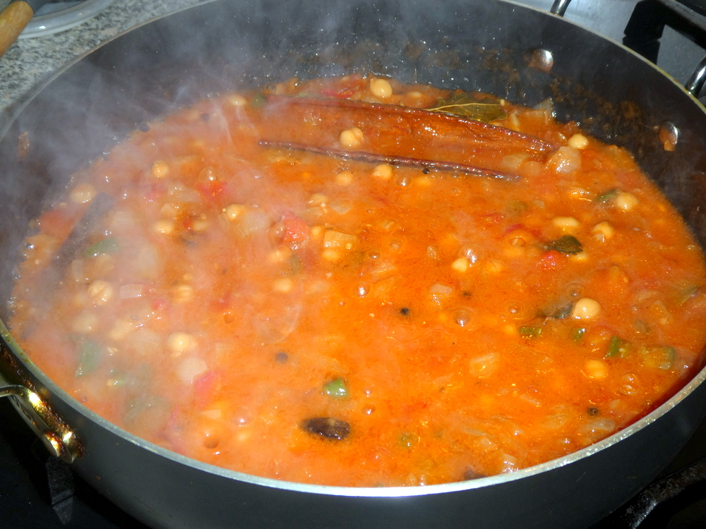 All was going well, following my own recipe, except the Tomatoes went in a bit late. No Turmeric, no Chilli Powder, every other standard – Curry – ingredient seems to go into this.