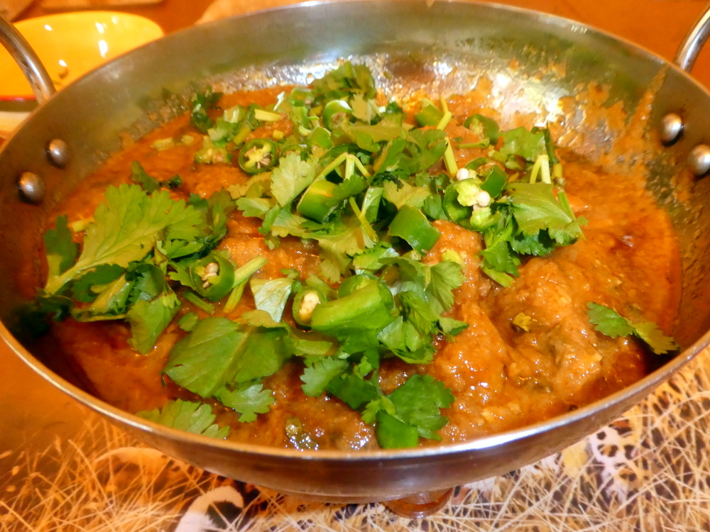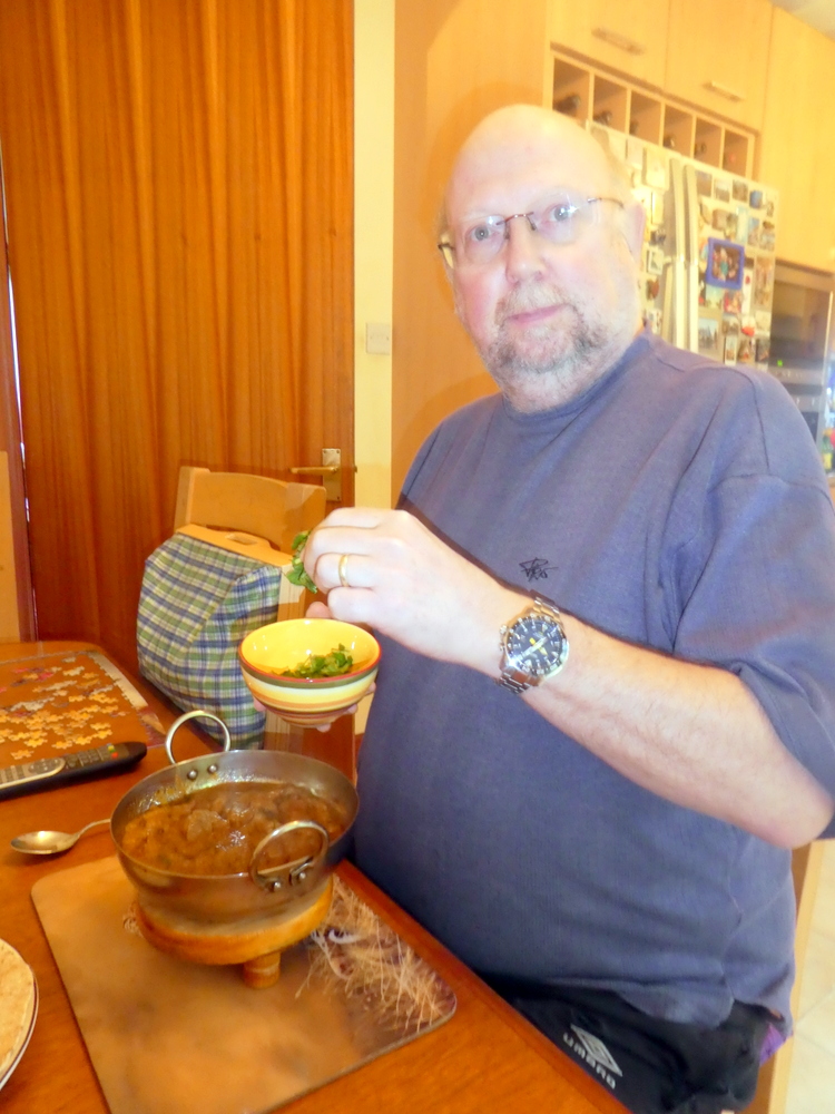 The Masala spoke Tomatoes in a beautiful Oily, Masala Mash, the antithesis of the recipe I tried two days ago. The sprinkling of Herb was supplemented by my own addition of – foliage. About half of the Lamb was on-the-bone, the solitary – sucky bone – stood out. The Meat count reached double figures, just.