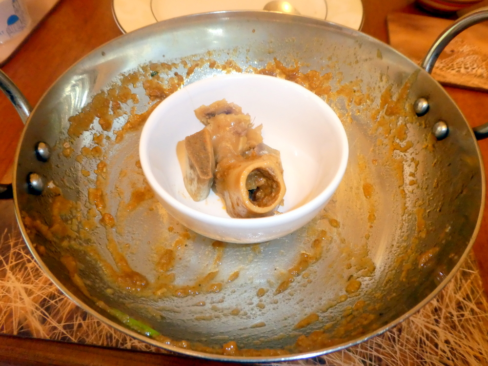 The Texture of the Lamb was outrageously Tender, the Meat falling off the bone. As has become my custom when having Curry without Rice, the Chapatti was used to scoop the tasty Masala, and fingers to eat the Meat. Hector was in his element, another special day.