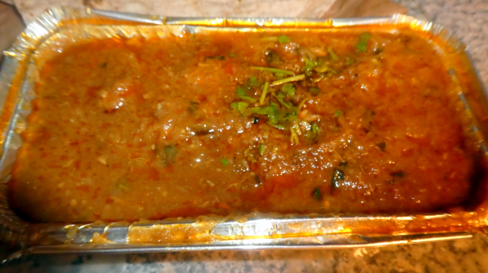 After the disappointment of Hector’s Home-cooked Lamb Masala a mere two days ago, there was the need for a quick fix. Amar at Taj Dumbarton (12 West Bridgend, Dumbarton G82 4AB) came back with a well timed response to my request for a Curry of quality. Back in January, Amar cooked a bespoke Lamb Masala which was in a different league from any Takeaway Curry ever purchased in this county. With the feeling that one cannot go back to the well too often, I contacted Amar last weekend inviting him to cook for me again. A 17.00 pick-up today was agreed.