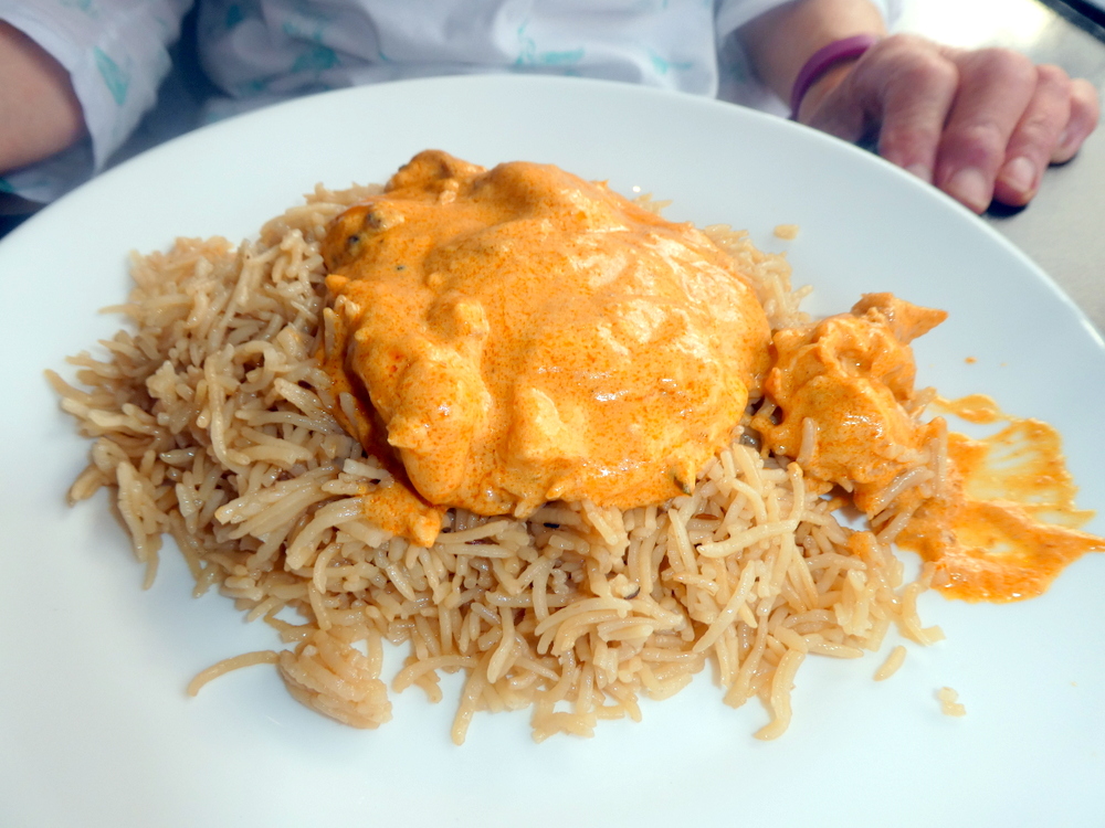The antithesis of the Hector Curry: the wrong Meat served in a Creamy, Soupy Masala. There is nothing about this that I found to be attractive. I must try it sometime to discover why people like it, maybe not. Marg only decanted half of her Pilau Rice, the remainder would go home. She ate every morsel otherwise and was particularly quiet such that two statements were not uttered.There was no comment on the level of Spice. The usually inevitable comparison with Mother India’s Cafe was not made either. Perhaps Hector was otherwise distracted.