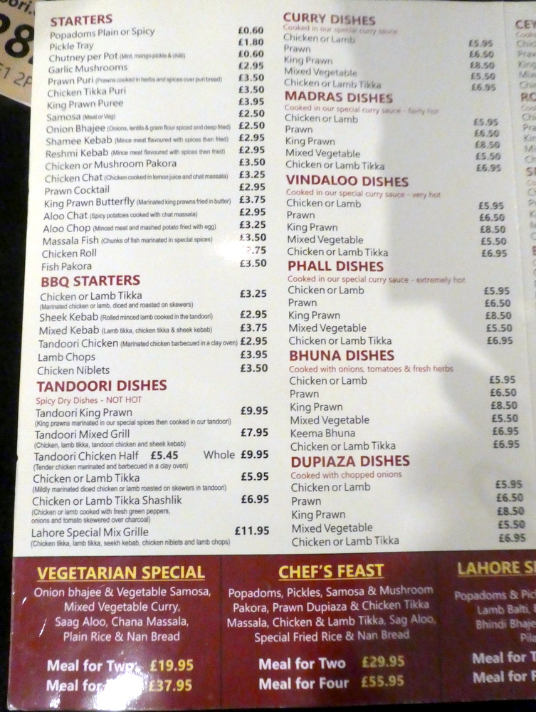 Sometimes taxi drivers give good advice. Back in August 2018, en route to the then favoured Desi Restaurant, our driver insisted that Lahore Tandoori Restaurant (539A Lincoln Rd., Peterborough PE1 2PB England) a couple of blocks further north, was the best place in town. The standard of Curry in Peterborough has impressed over the years, there has been the occasional disappointment. Having studied other sources, the word, is, one should ignore the run of the mill Curry Dishes on the Menu and go straight for the Lahori Desi Balti.