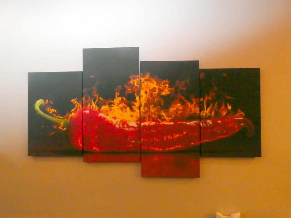 I had time to take the customary photos and attempt to capture the atmosphere of the venue and its décor. Informal, despite the table cloths, and large enough to hold some thirty odd diners on a busy night.