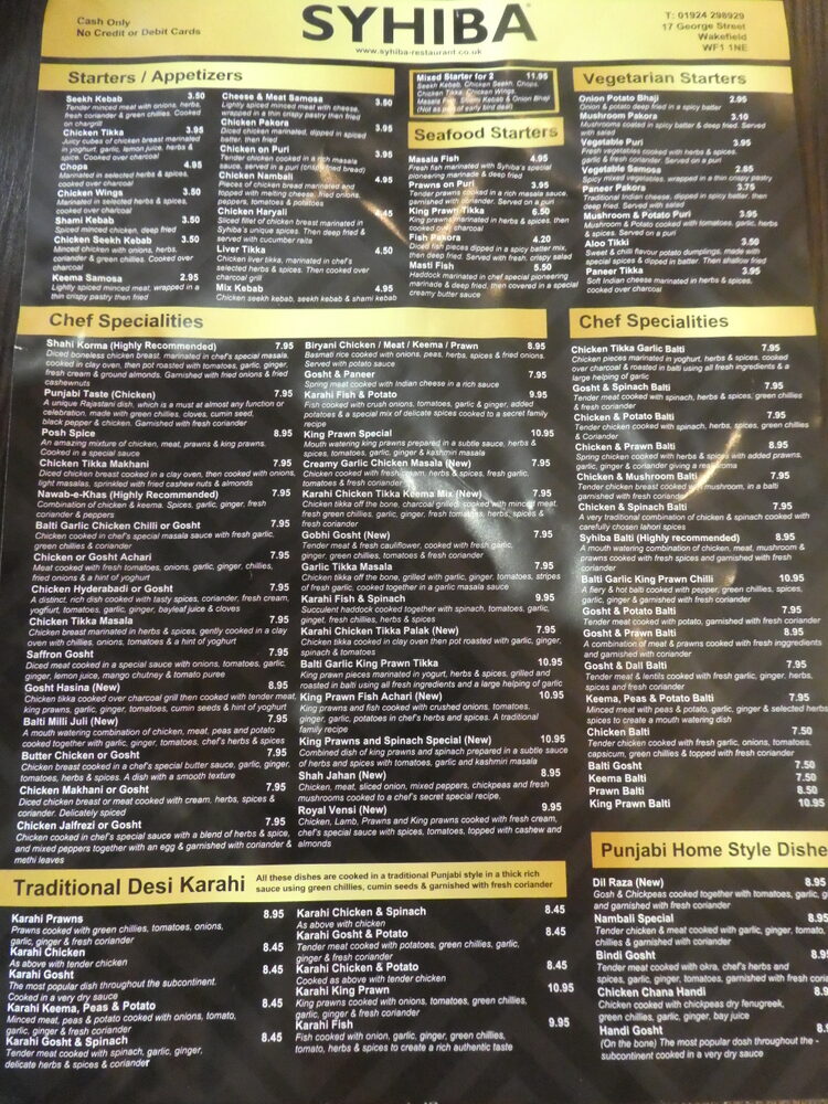 A reason for the Curry-Heute coverage of Sheffield being so limited is down to the discovery of Syhiba Restaurant (17 George St, Wakefield WF1 1NE England).