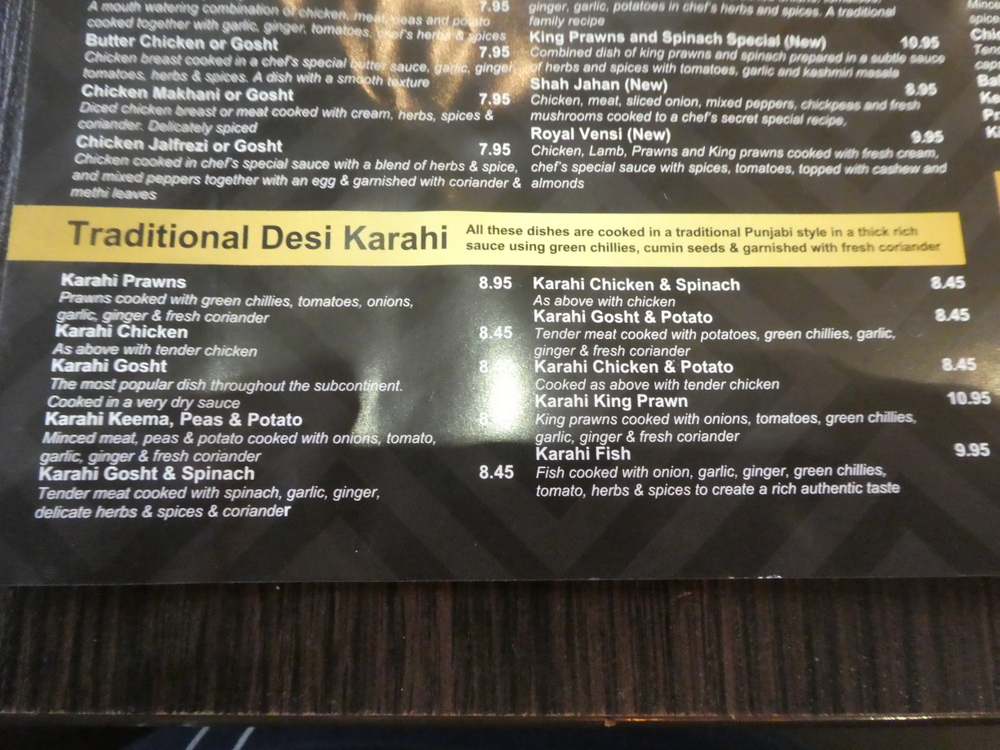 The Karahi Gosht (£8.45) served – Asian style – is why Hector was back, Howard would follow the lead, Marg would have it – as it comes. Clive returned to the Fish option – Karahi Fish – (£9.95) again served – Asian style.