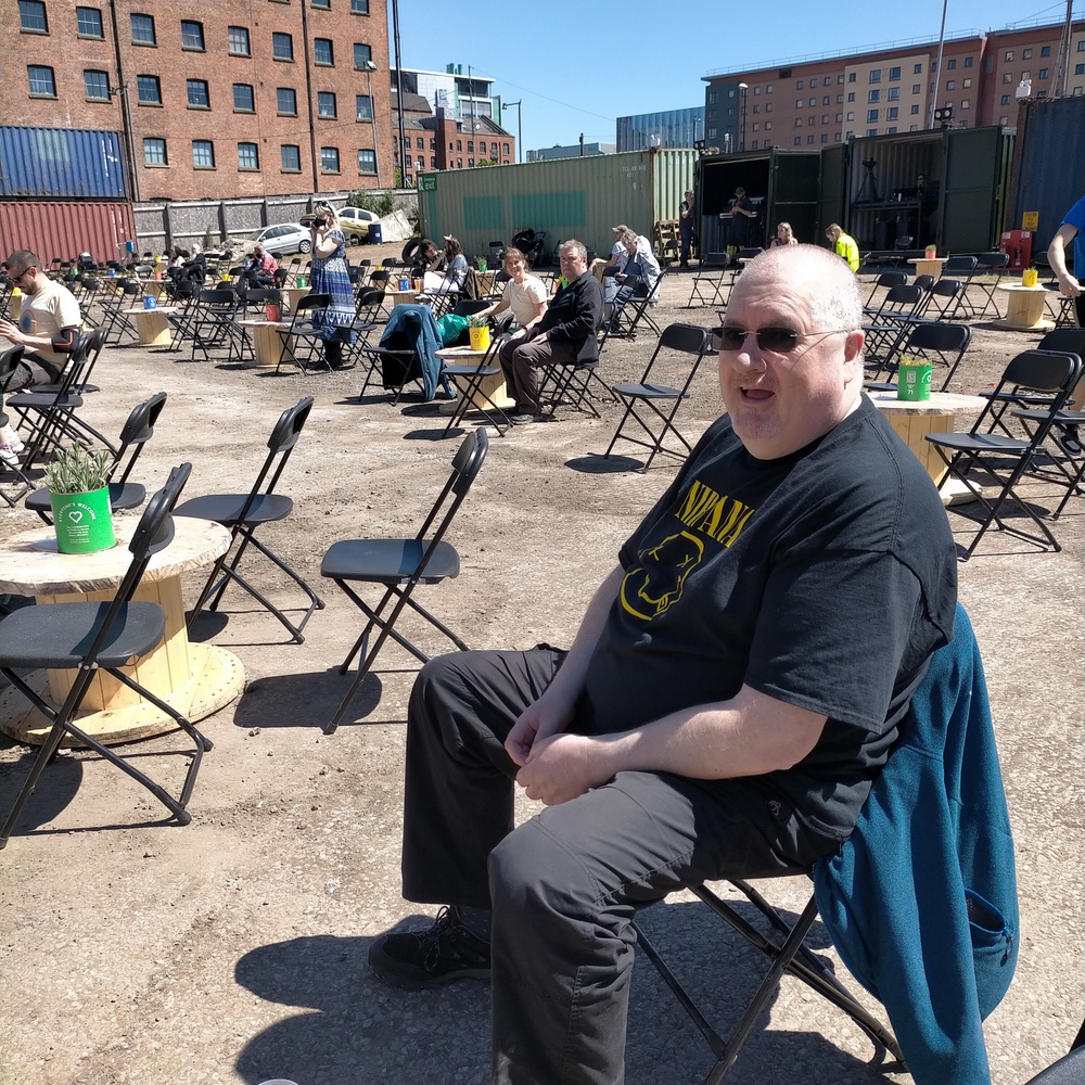 Farewells, until tomorrow. We took the tram down to Deansgate and found the brownfield site where the Henge gig would take place, just beyond Gasworks. Summer has arrived, a hat was mandatory for the Hector.