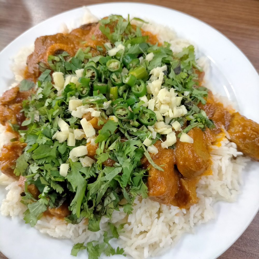 Normally served with a leg of Lamb sticking out from the Soupy Masala, I was surprised at what came. Rice was required to soak up all this Masala.