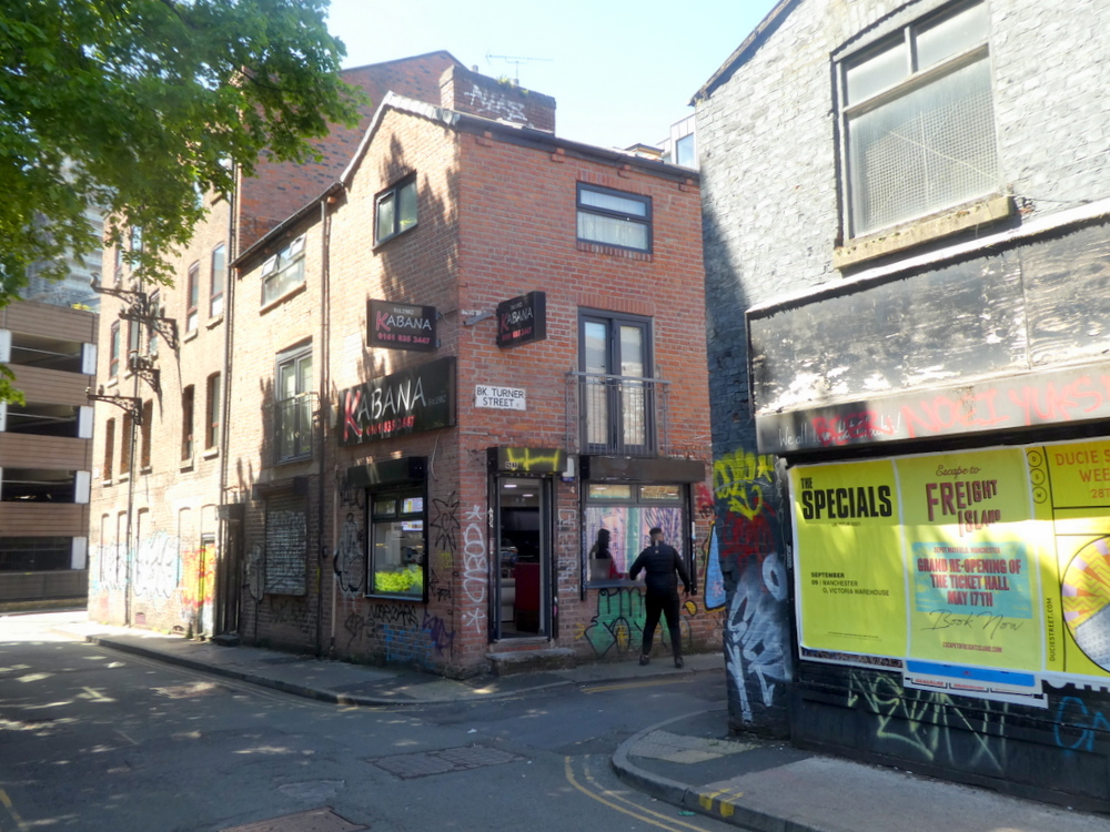 Howard had planned his trip to Sheffield for a gig, postponed. However, he did come up with an outdoor performance by Henge in Manchester this afternoon. Tickets were obtained for the Sheffield four. Fortunately, an earlier rise this morning was already arranged to accommodate a noon check-in at Manchester Ancoats followed by lunch at Kabana (22 Back Turner St., Northern Quarter, Manchester M4 1LQ England). This was the day after a certain Manchester football team lost a European Cup Final. Their local rivals had done the same earlier in the week. So it goes.