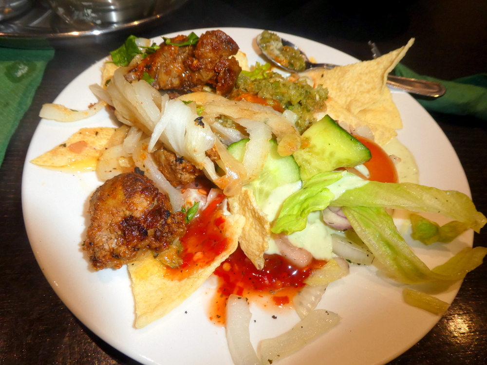 Strips of Capsicum aside, the presentation was all. As the contents of the platter were decanted it made me realise just what a mess our plates were with Salad, Dips and Poppadoms.