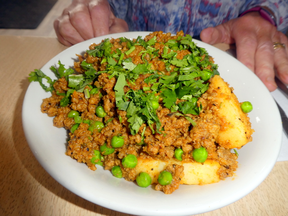 A very filling and spicy Keema with plenty of potatoes, peas and coriander – observed Marg – to make it one of my favourite dishes.