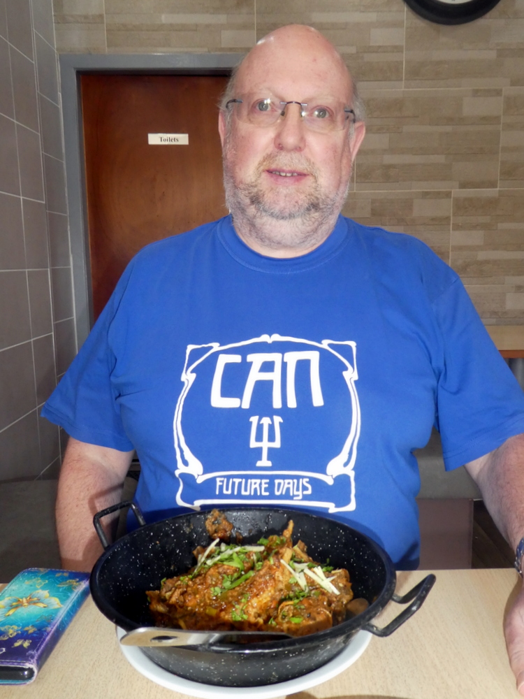 With no Naveed pro tem, I had to ask the new chap if he was expecting us. This baffled, why should he? I was weighing up my options, having studied the ready-made Curry on display, when Shkoor walked in; he was expecting us, tomorrow. Something had distracted him, Happy Big Birthday, Shkoor.