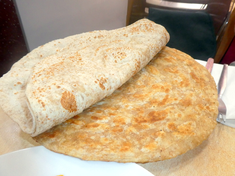 After a suitable break, the Bread arrived. Two large Chapattis, and a Paratha beneath. Marg would manage one Chapatti, I told Waris that I rarely finish a Paratha.