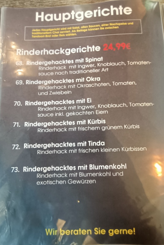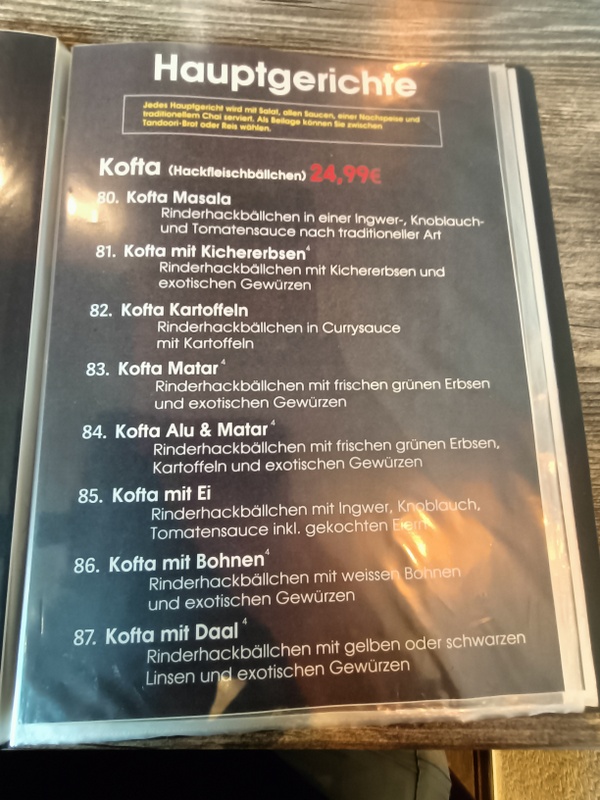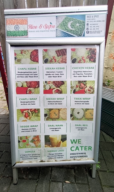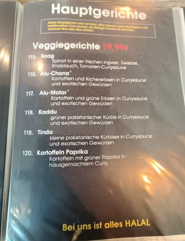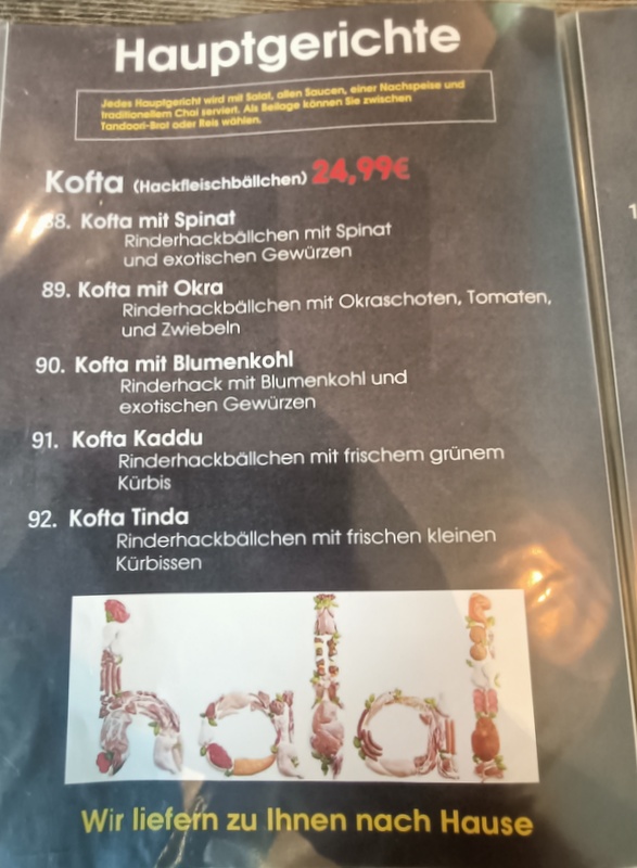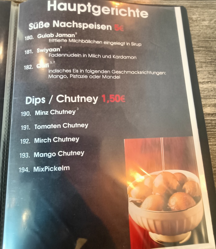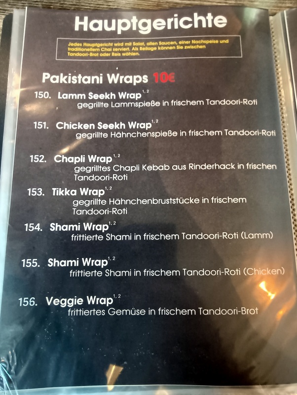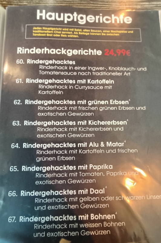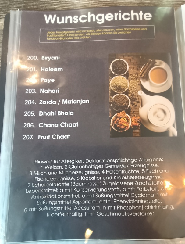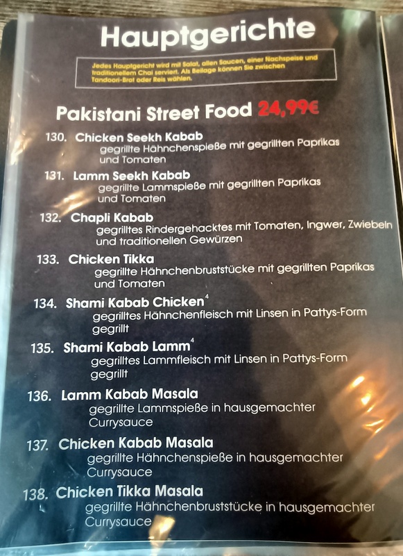Paye and Haleem were tucked away at the end. No price quoted, I wonder what the demand is for these Punjabi delicacies in Kaarst? Of greater attraction to Hector, Kofta (various), Shami and Seekk Kebab were also available, served with the same accompaniments as our choices. The good people of Kaarst may have won a watch.
