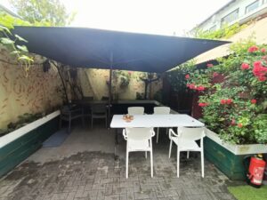 I went out ot the garden to get the photos. There I spotted the sign (below) promoting the Kebabs, the Streetfood.