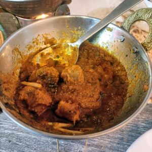 You have Desi Curry? – I asked en route. There was acknowledgment, however, we soon established that the young chap could have been new to Rice & Spice. He was not totally au fait with the items on the menu. A lady came out to greet, we would establish later this was – Any – Chef, and wife of Mein Host, Ahmed. I explained that we had come far to sample their hopefully Punjabi Desi Fayre.