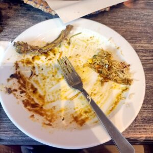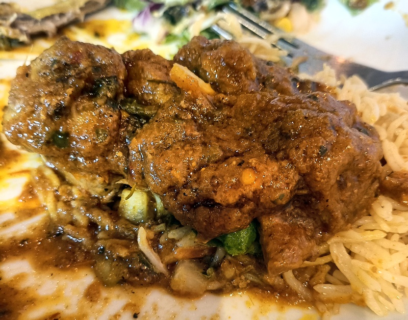 The final pieces of Meat were taken from the karahi and smothered with the retained Masala. My last mouthfuls were Curry & Rice, most unusual having ordered – Karahi. I just about managed to clear my plate.