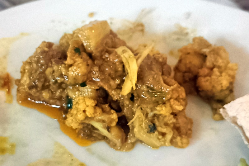As Marg arranged her Curry on her plate, it became apparent that not only was there Lamb and Cauliflower present, Potato was in there too: Aloo Gobi Gosht!