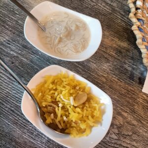 Ahmed verified our Order. That we had asked for Bread and no Rice was confirmed, however, Ahmed insisted that we should try his Rice. He promised Chai afterwards which I immediately refused. The Hector was then assured that Tea without milk could be provided.