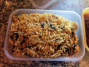 I waited the appropriate time. Mein Host took orders on the phone. Do people come out to collect at this time of night? I watched large Mushrooms being taken from the fridge, for my Rice, I deduced.