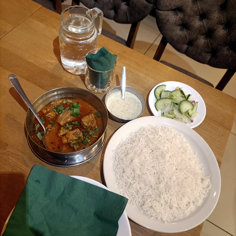 I asked if a Vegetable Rice was available, apparently not. When Moiz, son of Ahmed, had Handi By Darbar, his Veg Fried Rice proved to be the perfect accompaniment. So today, Plain Basmati which remains my preferred accompaniment when having this Curry in Berlin at Punjabi Zaiqa.