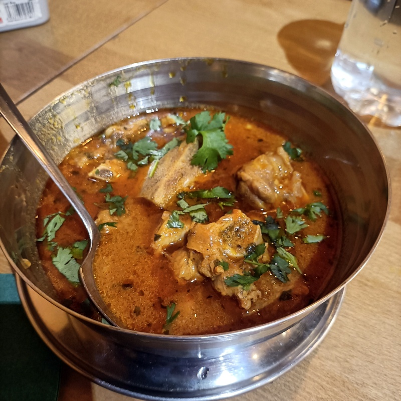 The alarm bells rang immediately. The simple sprinkling of Coriander on top of the Shorva bore no resemblance to that last enjoyed at Handi By Darbar. That it was so clearly a Shorva, and the telltale Citrus aroma was distinctly lacking, also had me wonder as to what I had been served. This Curry just looked Monday’s Aloo Gosht without the Potato.