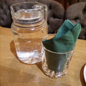 The Modest Salad and Raita would provide a bit of distraction. I would eat about half. The napkin in the glass, with the jug of water, was a simple touch of class. Darbar Grill may never rise above the level of Curry Cafe, but they do at least show a bit of flair.