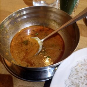 Clove was the dominant Spice in the richly flavoured Shorva. I studied the thin, oily Shorva closely, there was only the merest hint of Yoghurt Flecks present.  This would explain the total lack of – Citrus.