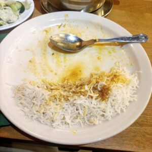 The Rice portion was a veritable plateful.  as is my normal practice, some Masala would be retained for later, in order to keep the Rice – Interesting.