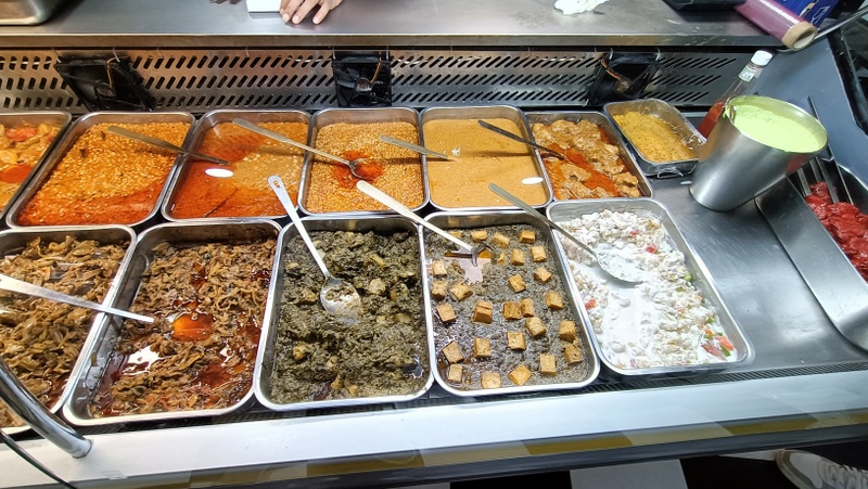 I studied the array of Dishes on display. Lots of Daal, a Vegetable Curry which evoked Klingon Gagh, and the biggest pieces of Paneer ever seen. Spinach and Paneer, I doubt if that would stay in my stomach for long.