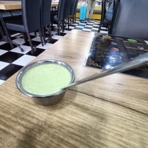 Whilst there was no Citrus aroma I associate with a Desi Qorma, the first dip of the Naan revealed a definite – Tang. A Spicy Tang. The Seasoning was maybe conservative, but this Curry was not lacking in Flavour. The Yoghurt Flecks were clear to see, this was way closer to a Desi Qorma than what I was served nearby yesterday.
